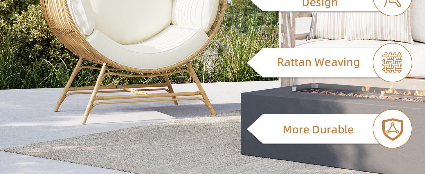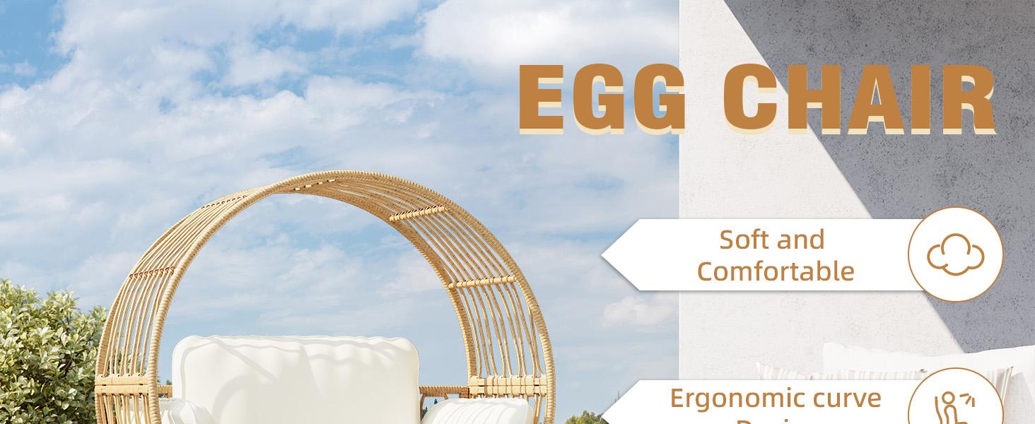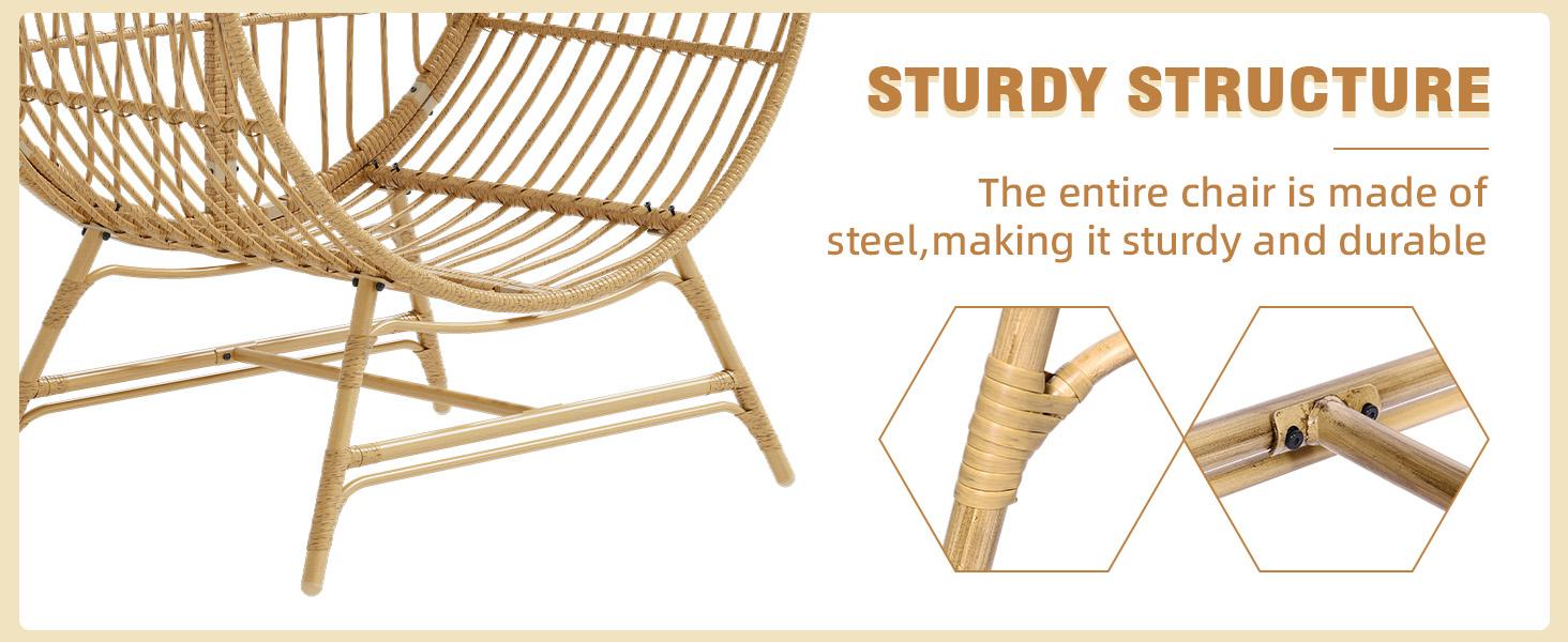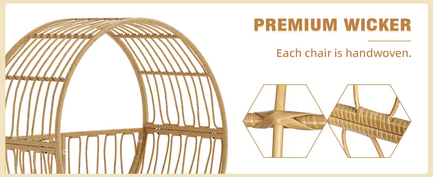 - Durable Construction: Crafted from premium-quality wicker and supported by a sturdy steel frame, this egg chair is built to withstand outdoor elements and ensure long-lasting durability. supports up to 330 lbs and withstands outdoor elements.