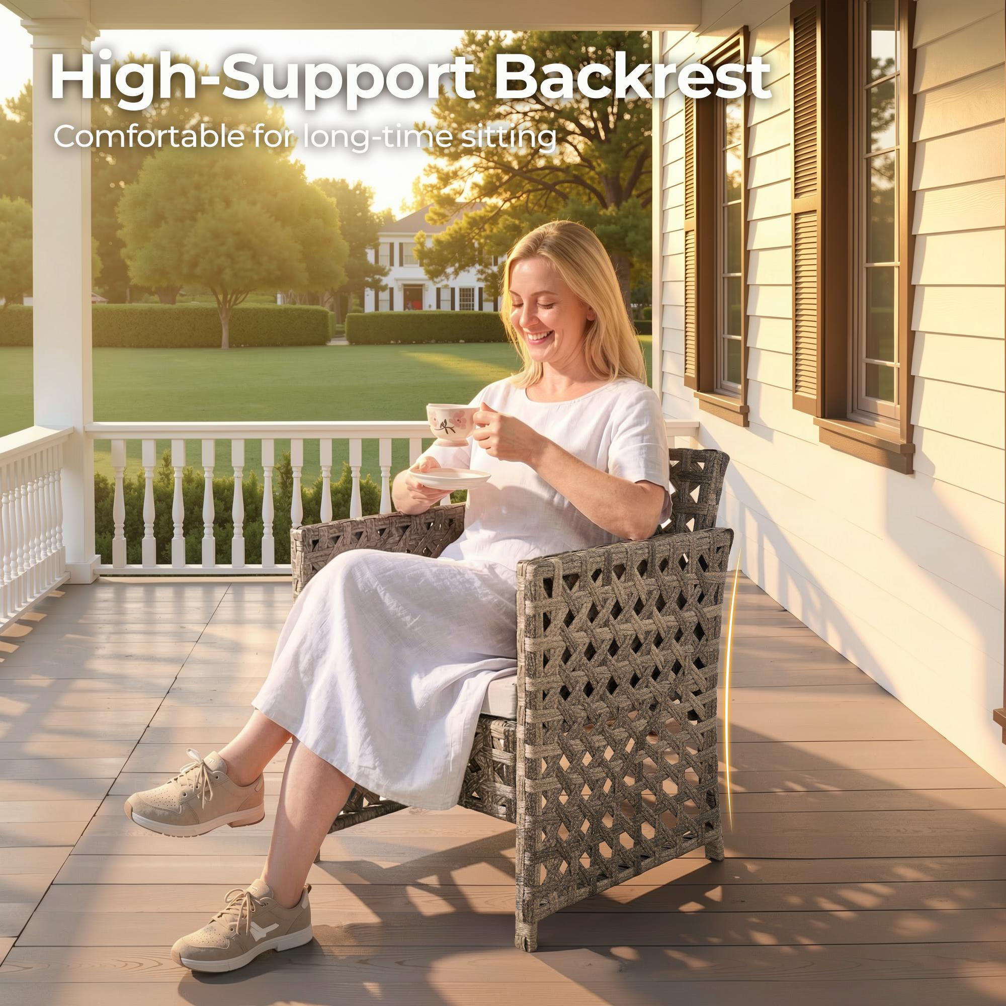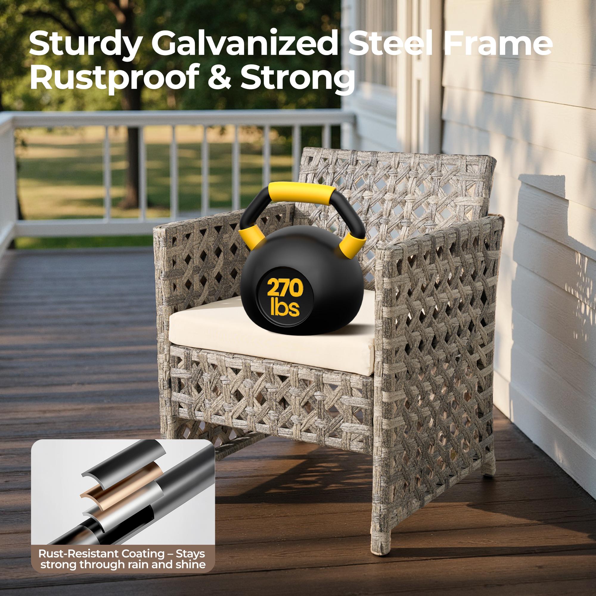 - COMFORTABLE & STYLISH DESIGN: This patio set has thick, high-density rebound sponge cushions for cozy seating. Its simple, stylish look suits patios, balconies, poolside, or gardens.